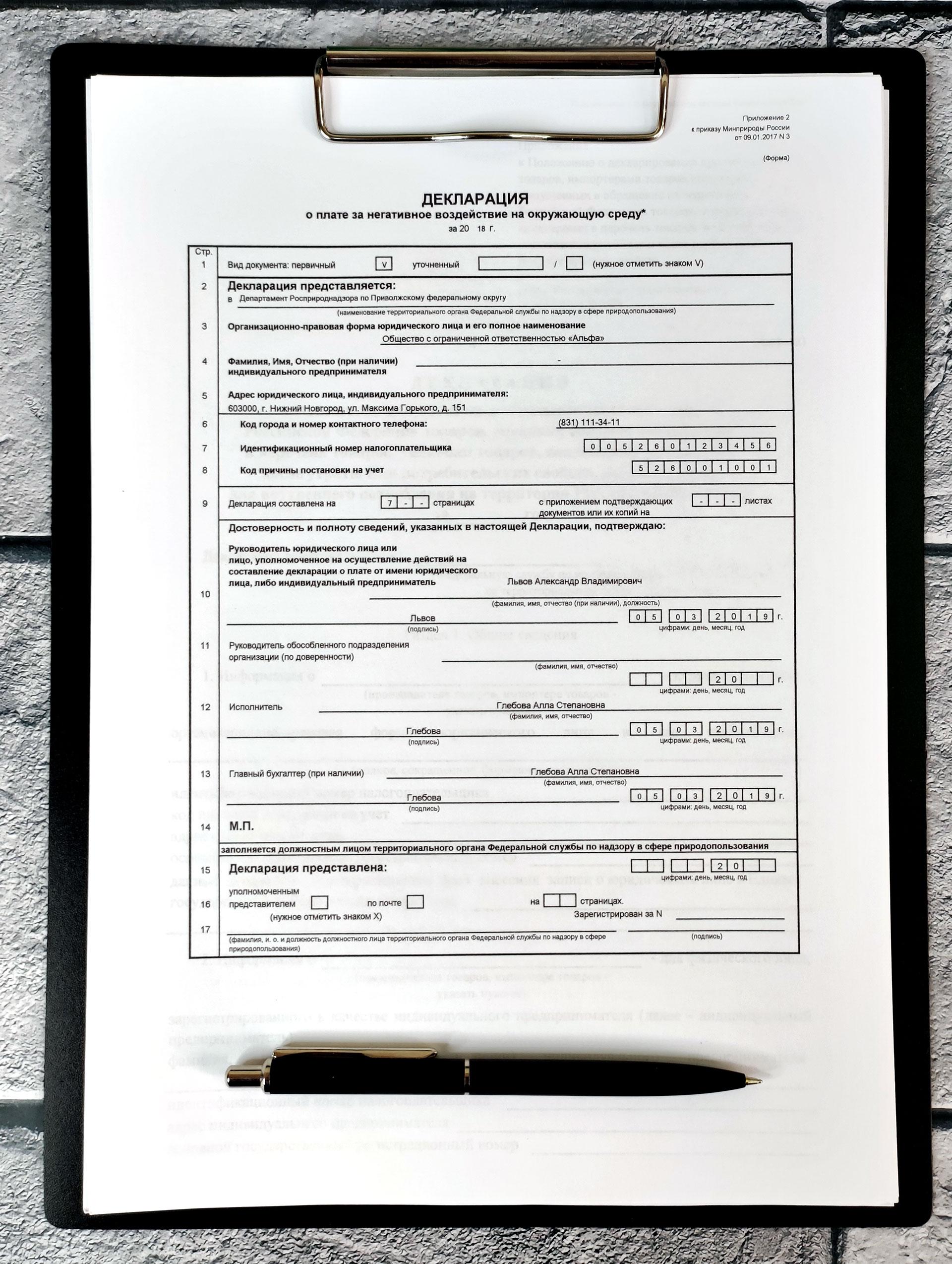 После составления документа, его нужно направить в территориальный орган Росприроднадзора по месту регистрации СПД. Образец заполнения декларации НВОС за 2024 год можно скачать ниже: