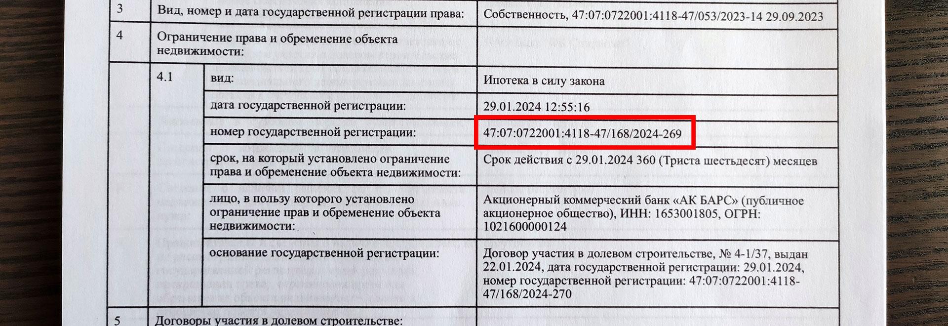 Это специфический код, который помогает установить наличие ограничений на имущество. В документах он может быть указан следующим образом: «47:07:0722001:4118-47/168/2024-269». Введя этот код в систему, можно получить данные об интересующем объекте.
