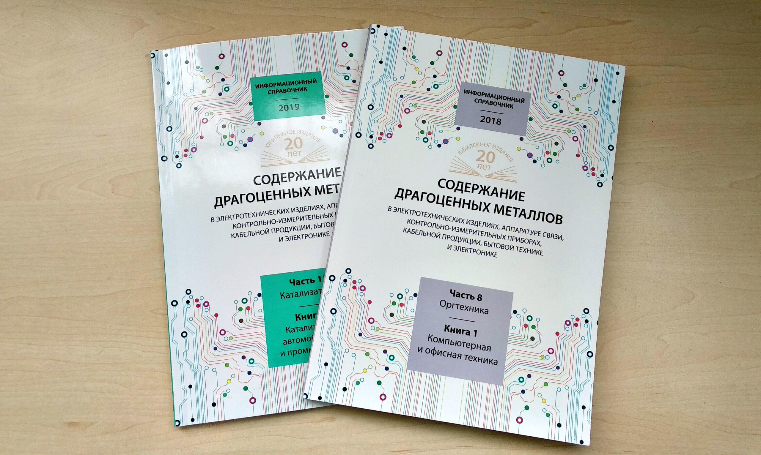 В 2018 году вышло юбилейное издание справочника. Оно было седьмым. Он собрал наиболее полный перечень всей выпускаемой продукции не только отечественного, но и зарубежного производителя, которая содержит золото, серебро, платину и другие ценные металлы. На этот момент сборник состоял из 49 книг, которые разбиты на 16 частей, а именно: