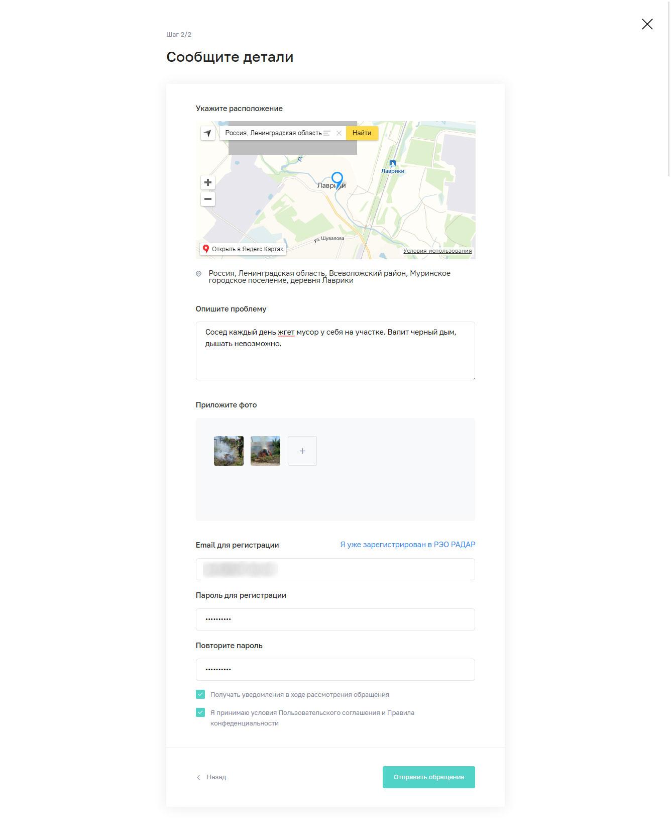 5. Изложить суть проблемы (нарушение правил пожарной безопасности, отказ оператора вывозить мусор) указать электронную почту, загрузить фотографии. Отправить сообщение.