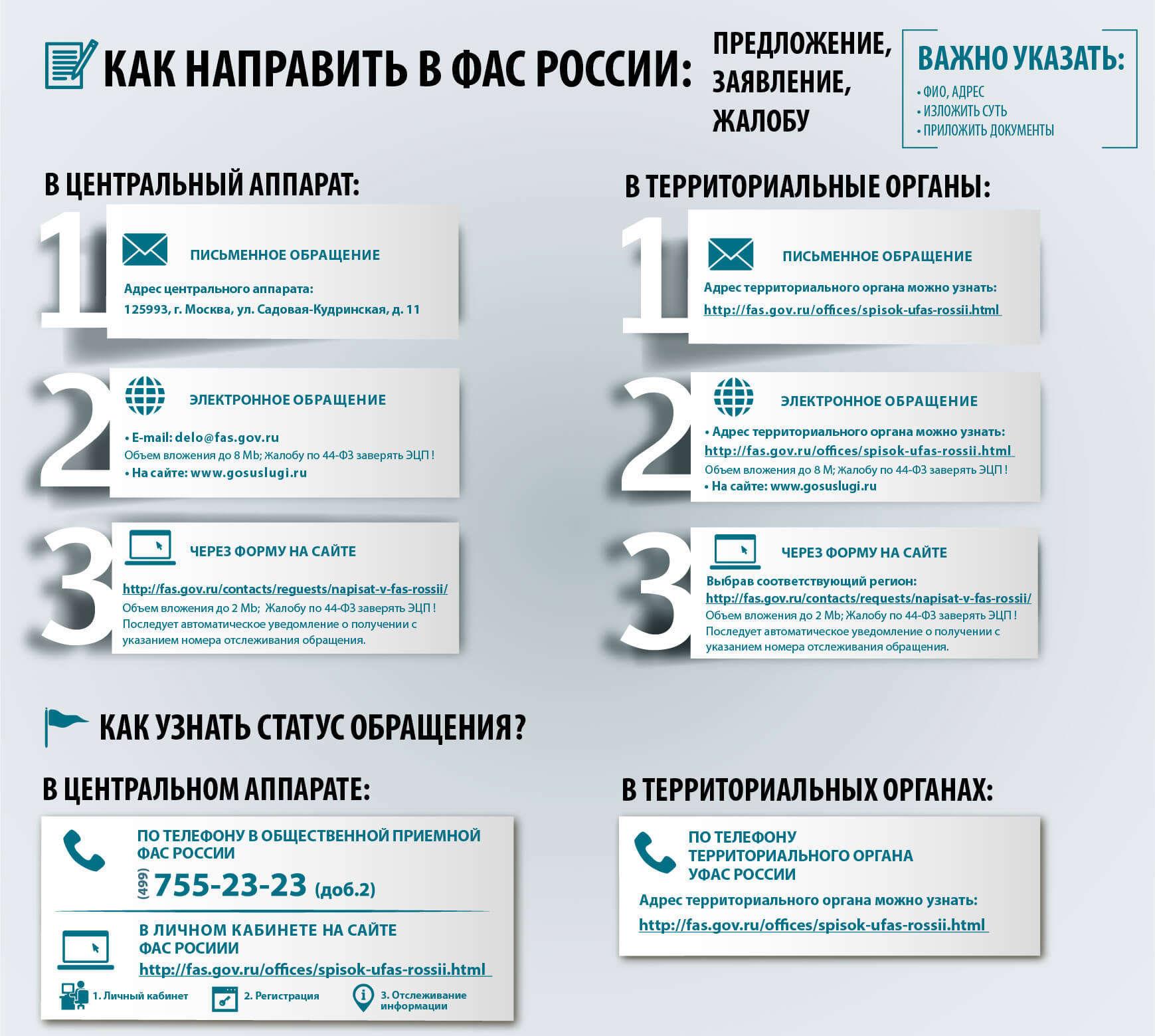 - Установить точное наименование территориального органа ФАС, в который направляется обращение, – через сеть, например, через официальный сайт ведомства. Полученные данные используются, чтобы правильно указать адресат;
